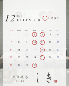 11月、定休日のお知らせ 2025年11月1日 最終更新日時 : 2025年11月1日 しきオーナー焼き鳥 お世話になっております。 11月は5日(水)が臨時休業となります。 宜しくお願い致します。 カレンダー