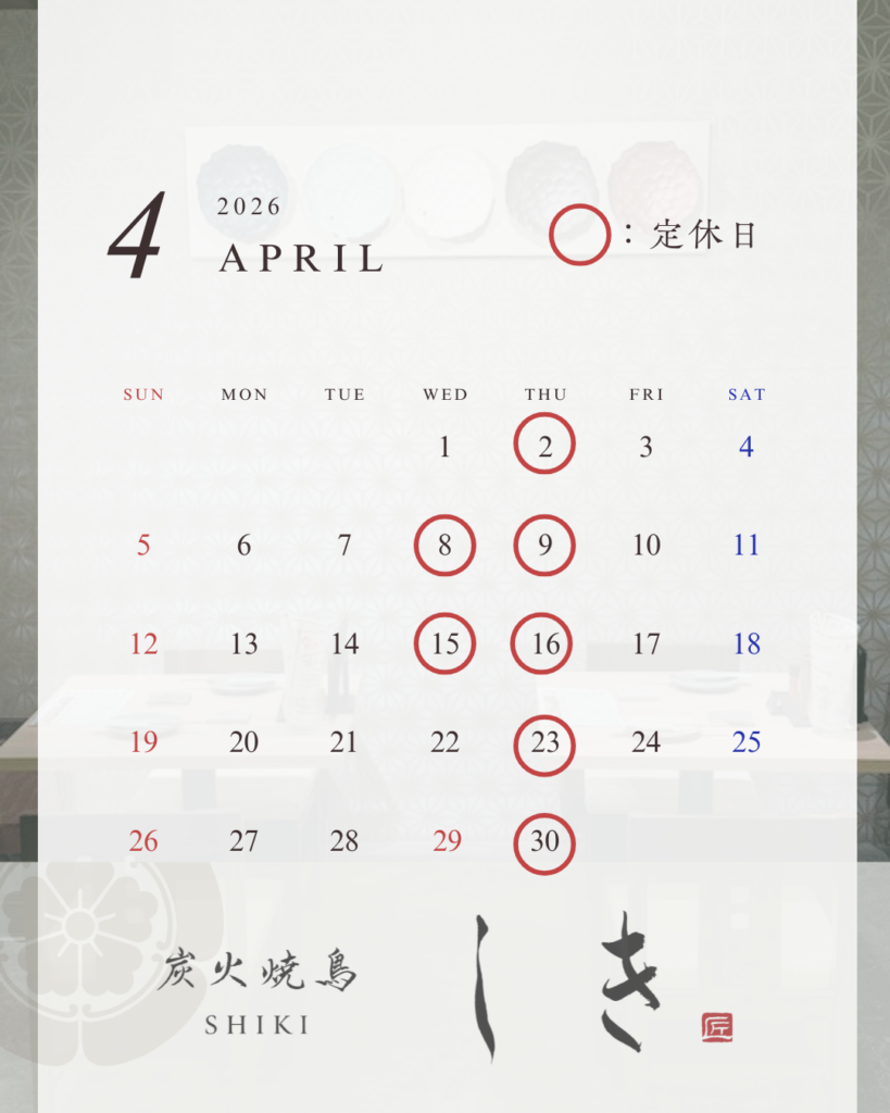 4月、定休日のお知らせ